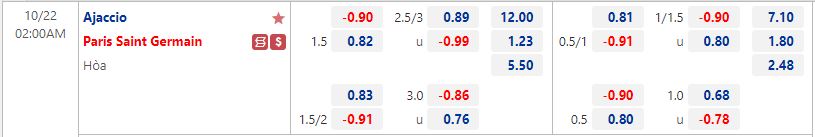 Soi kèo Ajaccio vs PSG, kèo hiệp 1
