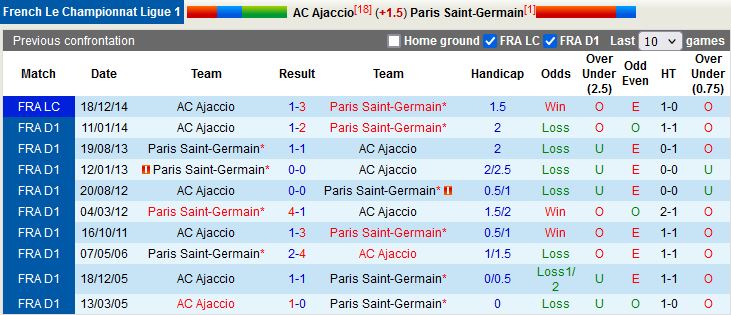 Về phía Ajaccio, tín hiệu khởi sắc đang dần đến với đội chủ nhà. 4 vòng đấu vừa qua, họ chỉ thua duy nhất 1 trận, hòa 1 và có 2 chiến thắng, đạt tỷ lệ thắng kèo Châu Á lên đến 66/67%. Ngoài ra, trong những lần đụng độ PSG, Ajaccio cũng hiếm khi thua đậm. Con số thống kê cho thấy cả 4 lần chạm trán gần nhất trong khuôn khổ Ligue 1, PSG đều không vượt qua Ajaccio với tỉ số cách biệt.