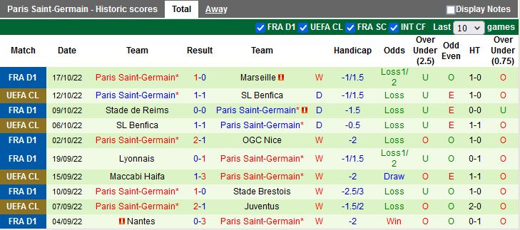 Cụ thể, tính ở tất cả các đấu trường, 5 trận vừa qua, PSG thắng 4, hòa 1 và cả 4 trận, họ đều không thắng cách biệt, đồng nghĩa với việc PSG thua cả 5 trận theo tỷ lệ kèo Châu Á. Tính riêng tại Ligue 1, PSG dù đang dẫn đầu bảng với thành tích bất bại sau 11 lượt trận, nhưng thầy trò HLV Galtier lại nằm trong nhóm có số trận thắng kèo Châu Á thấp nhất với chỉ 36.36%.
