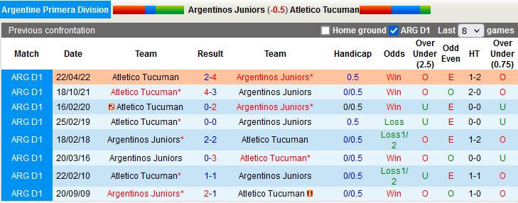 Ngoài điểm tựa sân nhà, lịch sử cũng đang ủng hộ Argentinos. Trong thập niên 2000, 2 đội chỉ đụng độ 8 lần và chủ nhà có phần áp đảo với chỉ 2 lần bại trận bên cạnh 4 chiến thắng cùng 2 kết quả hòa. Đáng chú ý, trong 4 trận thắng của Argentinos, có 3 trận họ chấp Tucuman với tỷ lệ kèo Châu Á đúng 1/2, tương tự như cuộc chạm trán vào rạng sáng ngày mai.