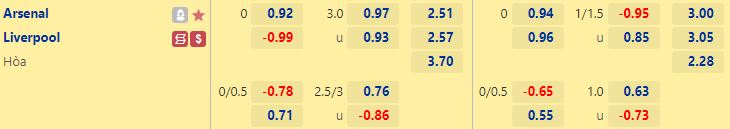 Soi kèo Arsenal vs Liverpool, kèo hiệp 1