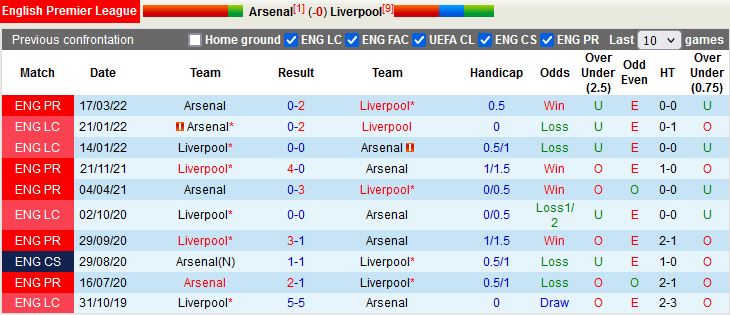 Liên tiếp 7 lần đụng độ Liverpool gần đây, Arsenal không một lần được hưởng niềm vui chiến thắng, thậm chí còn phải nhận tới 5 thất bại. Tính riêng tại ngoại hạng Anh, 2 mùa giải gần nhất với 4 lần chạm trán, Pháo thủ thành London cũng đều bại trận trước Lữ đoàn đỏ. Những con số thống kê vừa đề cập cho thấy Liverpool thực sự là khắc tinh của thầy trò HLV Mikel Arteta.