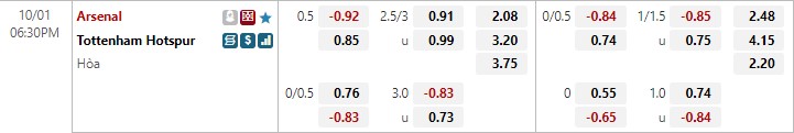 Soi kèo Arsenal vs Tottenham, kèo hiệp 1