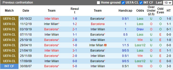 Inter đang có dấu hiệu hồi sinh với 2 thắng lợi liên tiếp. Nhưng hiệu suất thi đấu sân khách của CLB này thì vẫn thiếu thuyết phục. 11 chuyến hành quân xa mới nhất, Inter chỉ 4 lần thắng theo châu Á. Barcelona, như trên đã phân tích, ngoài thành tích đối đầu siêu vượt trội Inter tại Nou Camp (toàn thắng 6/6) còn đang thể hiện rất tốt sân nhà với 4 khúc khải hoàn liên tiếp với tổng hiệu số bàn +12. Chủ nhà là lựa chọn đương nhiên!