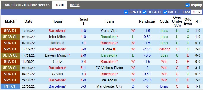 Có thể thấy, sau những cơn mưa bàn thắng trong tháng đầu tiên mùa bóng 2022/23, Barcelona đang gặp vấn đề trong hiệu suất tấn công. 5 lần ra sân vừa qua, đội bóng xứ Catalan chỉ “nổ” 6 bàn và kết quả chung cuộc chuỗi trận này đều “về” Xỉu. Kèo Tài-Xỉu cặp đấu này là 3 bàn, nhưng cần lưu ý 5 trận Barcelona vs Inter tại Nou Camp trong khuôn khổ Champions League tổng số lần lưới rung đều từ 3 trở xuống. Xỉu rõ ràng là lựa chọn tốt hơn.