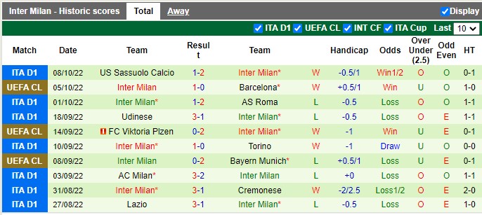 Hiệu số bàn thắng hiệp 1 mà Barcelona tạo ra trước Inter trong 6 trận sân nhà tiếp đội bóng đến từ Serie A là dương +7. Trong đó có 4 trận đội chủ sân Nou Camp thắng kèo châu Á 45 phút đầu. Thống kê từ 4 trận gần nhất phải chấp sâu (trên 1 bàn) tại sào huyệt của mình, thầy trò Xavi Hernandez đều bước vào giờ nghỉ giữa hiệp với phần thắng. Đó là những dữ kiện đủ mạnh để đặt cửa chủ nhà thắng hiệp 1 cặp đấu Barcelona vs Inter đêm mai.
