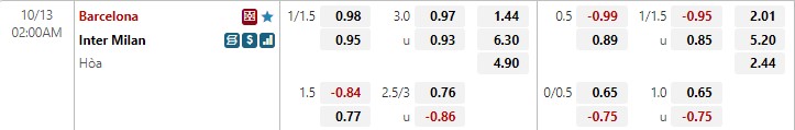 Soi kèo Barcelona vs Inter, kèo hiệp 1