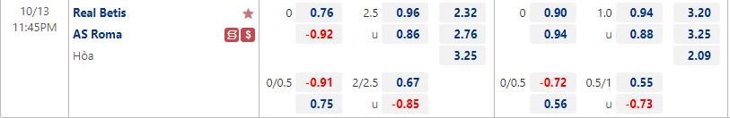 Soi kèo Betis vs Roma, kèo châu Á