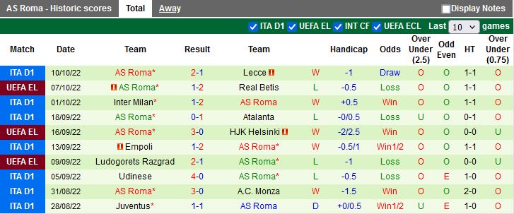 Từ đầu mùa, Betis đá tổng cộng 11 trận và họ có 2 lần thất bại. Tuy nhiên, số trận thắng tỷ lệ kèo châu Á của Betis là 8, chiếm 72%. Trên sân nhà, Betis cũng đang đá cực hay với 6 trận thắng liên tiếp và tại Europa League, như đã đề cập đến, đại diện Tây Ban Nha cũng sở hữu chuỗi 3 trận toàn thắng khi vượt qua Helsinki 2-0, Ludogorets 3-2 và 2-1 trên sân Roma như đã đề cập đến.