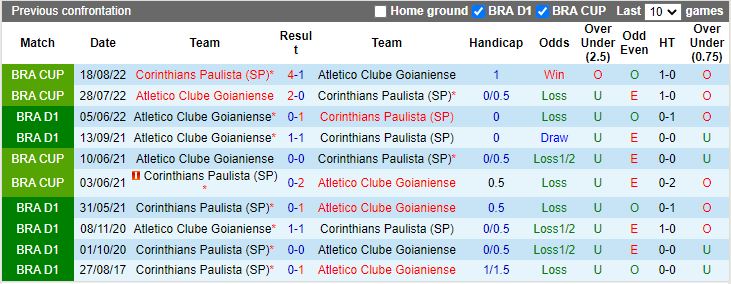 Trên sân khách, Goianiense không thắng, không ghi bàn và thua 4/5 trận gần nhất. Ngược lại, trên sân nhà, Corinthians nhập cuộc cực kỳ hưng phấn với 4 chiến thắng liên tiếp trước giờ giải lao. 4 lần đụng độ gần nhất, Goianiense cũng chỉ một lần được hưởng niềm vui trước giờ nghỉ, nhận 3 thất bại. Do đó, sẽ là không bất ngờ nếu hiệp 1 trận đấu này kết thúc với lợi thế nghiêng về chủ nhà.
