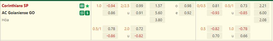 Soi kèo Corinthians vs Goianiense, kèo hiệp 1