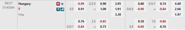 Soi kèo Hungary vs Italia, kèo hiệp 1