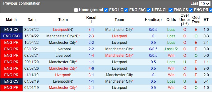 Thế nhưng đó đã là quá khứ, còn hiện tại, yếu tố lịch sử khó có thể giúp Liverpool tránh khỏi thất bại khi 2 đội gặp ở trận cầu đinh vòng 11 ngoại hạng Anh. Bất chấp được đá trên sân nhà, Lữ đoàn đỏ vẫn “cửa dưới” so với Man City khi tỷ lệ kèo Châu Á được định mức Man Xanh chấp 3/4 thời điểm ban đầu. Đây cũng là mốc kèo cao nhất trong những lần làm khách tại Anfield của The Citizens.