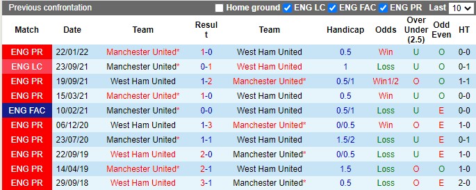 Liên tiếp 2 mùa giải gần đây tại ngoại hạng Anh, Man United đều có chiến thắng trước West Ham. Đó là cơ sở vững chắc để tin vào kịch bản Quỷ đỏ sẽ có 3 điểm trong trận đấu này.