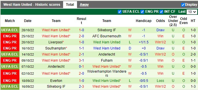 West Ham đang thi đấu tốt, nhưng chỉ khi được đá trên sân nhà. Còn nguyên nhân khiến họ không là địa chỉ đáng tin cậy với tỷ lệ kèo châu Á được chấp 1/2 bởi trên sân khách, West Ham trở lên mong manh. Con số thống kê cho thấy 4 trận gần nhất tại ngoại hạng Anh mùa giải năm nay, The Hammers chỉ có 1 kết quả hòa và nhận 3 thất bại khi phải rời xa tổ ấm London City.