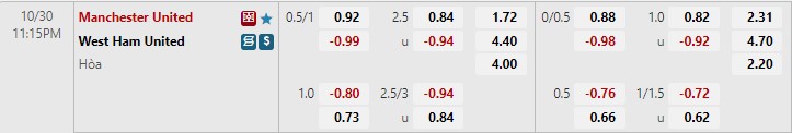 Soi kèo Man United vs West Ham, kèo hiệp 1