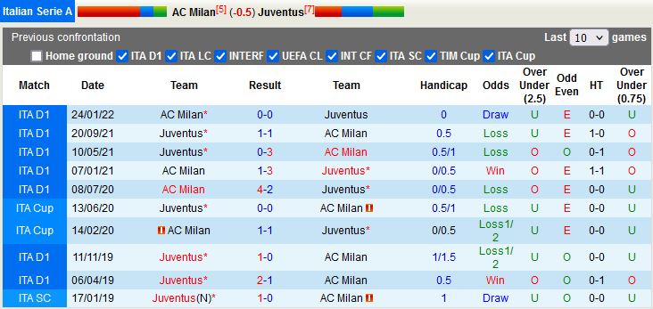 Soi kèo Milan vs Juventus, kèo hiệp 1