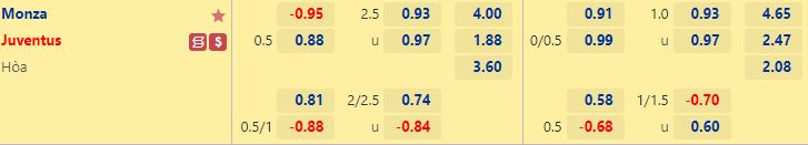 Soi kèo Monza vs Juventus, kèo hiệp 1