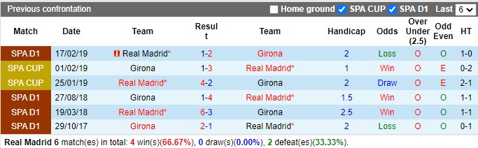 Tỷ lệ kèo châu Á Real Madrid chấp 2 hòa được ấn định thời điểm ban đầu phần nào phản ánh sự chênh lệch giữa 2 đội. Girona vừa mới giành quyền thăng hạng sau 2 năm ngụp lặn ở Segunda và đang phải đối mặt với nhiều vấn đề. 11 vòng đấu, họ chỉ có 2 chiến thắng, thua tới 6 trận, xếp ở vị trí thứ 18 BXH. Trên sân khách, Girona cũng để thua liên tiếp 3 trận vừa qua.