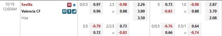 Soi kèo Sevilla vs Valencia, kèo hiệp 1