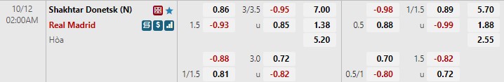 Soi kèo Shakhtar vs Real Madrid, kèo hiệp 1