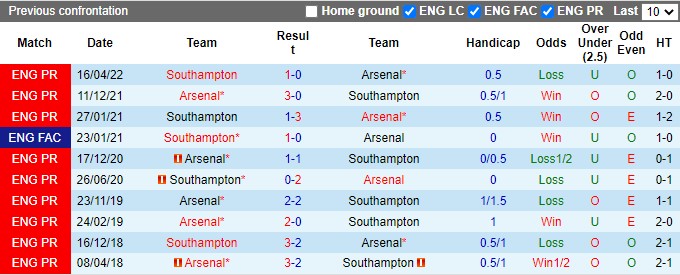 Trong kỷ nguyên Premier League, từ 2002 đến nay, Arsenal đụng độ Southampton tổng cộng 27 lần. Kết quả, Pháo thủ thành London hoàn toàn áp đảo với 13 chiến thắng, chỉ 5 lần thất bại bên cạnh 9 kết quả hòa. Ngoài ra, Arsenal cũng đang là một trong 2 đội có số trận thắng tỷ lệ kèo Châu Á tốt nhất ngoại hạng Anh với 70%. Thế nên Arsenal là sự lựa chọn hợp lý và chính xác đối với giới túc cầu.
