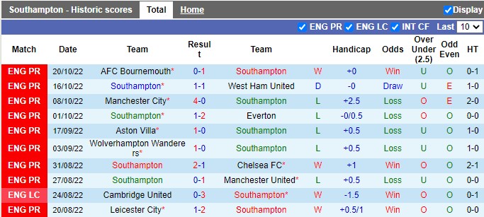 Về phía Southampton, thầy trò HLV Hasenhuttl đang phải đối mặt với nhiều vấn đề. Mặc dù vừa có chiến thắng 1-0 trên sân tân binh Bournemouth, song đó mới chỉ là lần thứ 3 từ đầu giải, The Saint ca khúc khải hoàn. Với 6 thất bại, Southampton đang xếp ở vị trí thứ 14 trên bảng tổng sắp và là một trong 3 đội có số trận thắng tỷ lệ kèo châu Á thấp nhất giải với 27.27%.