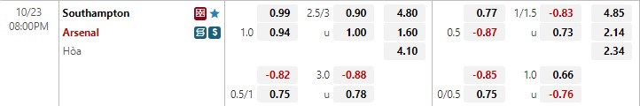 Soi kèo Southampton vs Arsenal, kèo châu Á