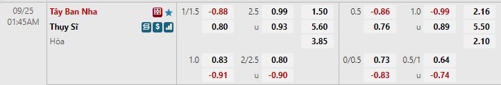 Soi kèo Tây Ban Nha vs Thụy Sĩ, kèo hiệp 1