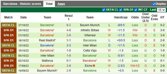 Thất bại 0-3 ngay trên sân nhà trước Bayern Munich chính thức loại Barcelona ra khỏi vòng bảng Champions League, một kết quả nằm ngoài dự đoán của giới chuyên môn bởi xét về thực lực, thầy trò HLV Xavi đủ khả năng cạnh tranh với Inter. Tuy nhiên, việc đạt điểm rơi phong độ không đúng thời điểm đã khiến Barcelona phải ngậm ngùi xuống thi đấu tại Europa League sớm một vòng đấu.