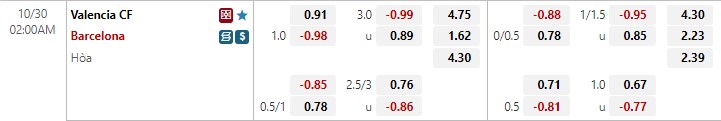 Soi kèo Valencia vs Barcelona, 02h00 ngày 30/10 – VĐQG Tây Ban Nha